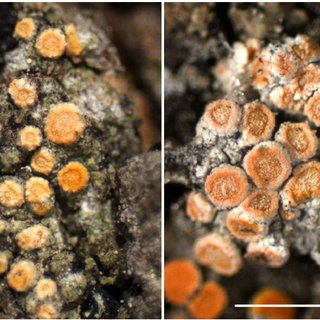 Caloplaca is a crustose lichen well known for its bright orange, yellow, or reddish thallus and apothecia.